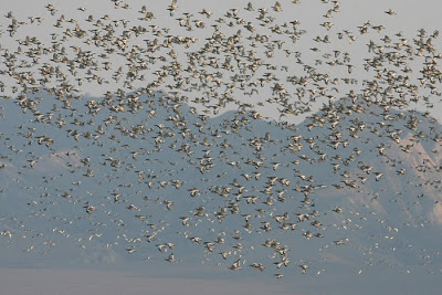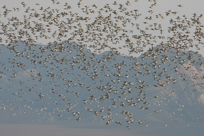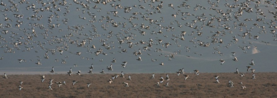 At the central lake we saw 1200 Flamingos, 300 Ruddy Shelducks, 2500 Greater and 40 Lesser White-fronted Geese and 5 Red-breasted Geese. However, the highlight of the trip was the mass of Little Bustards. In the Adjinohur valley we found an very impressive flock of 25000 individuals.