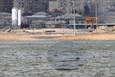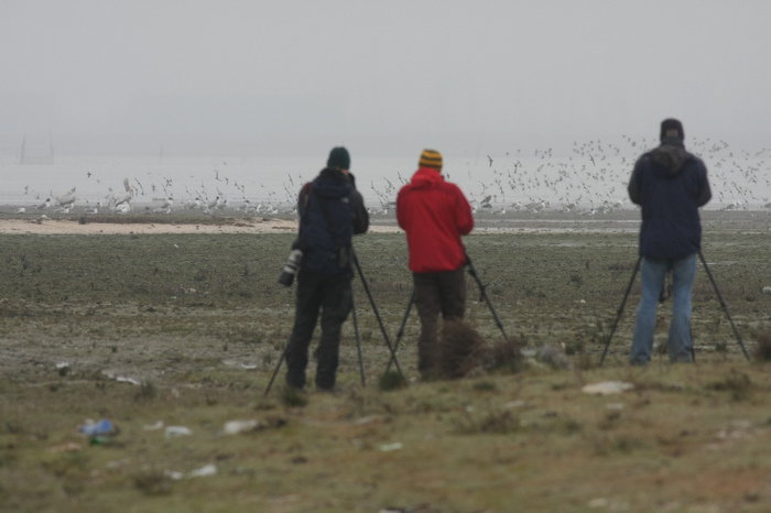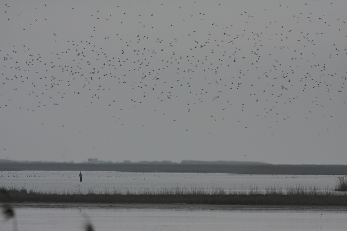 On 25th February, we birded in the Kura delta, but what we found was a waterfowl hunt of some locals. In one line six hunters waded through a long but rather narrow lagoon , which was full of waterfowl, mostly Coots. They pushed the fleeing waterfowl to the one end of the lagoon. Here, at the end of the lagoon, was no escape for the swimming birds, so they start flying. Most of the birds flew overhead of the hunters to reach the other side of the lagoon, but this was for many birds a deadly mistake. As Coots are bad flyers, they are now easy targets for the shooting hunters.