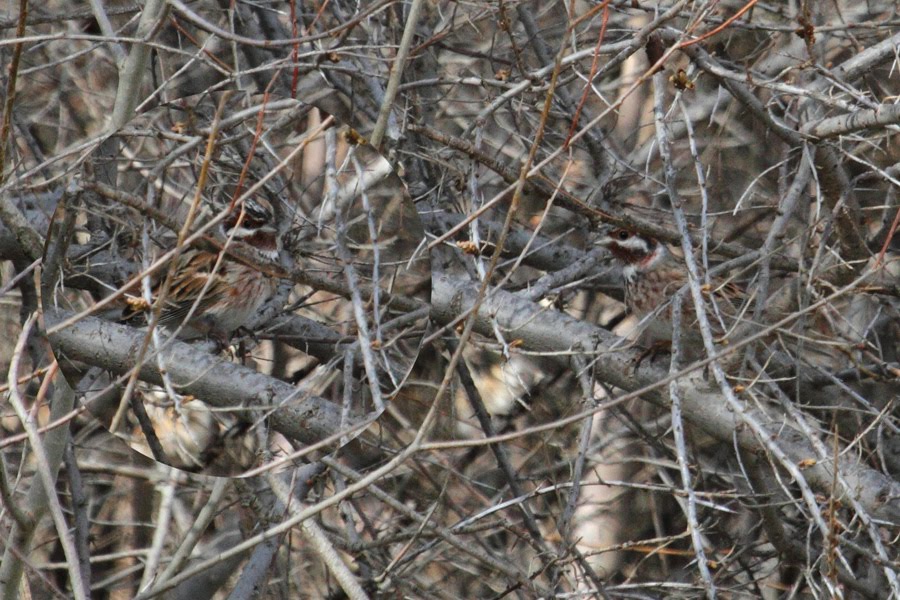 After a cold night camping in the montane semi-desert of the Zuvand upland we birded around Gosmalijan and Pirasora on 28th February. The higher mountains were still snow covered. The best observations in this area were two male and a female Pine Buntings.