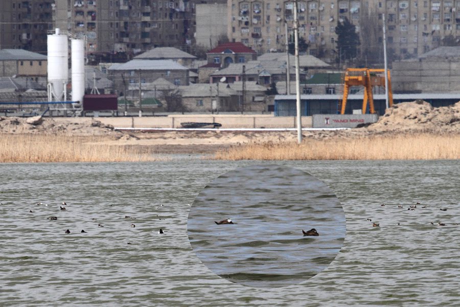 Further into the south, we visited the Kizil Agach Bay. Here we also found hunting activity and distant shooting was heard throughout the days in that region. Interestingly, the biggest concentration of waterfowl was found in the Mahmudhala Hunting Sanctuary with about 35000 ducks. Among them, we found only 11 White-headed Ducks.