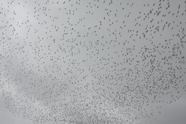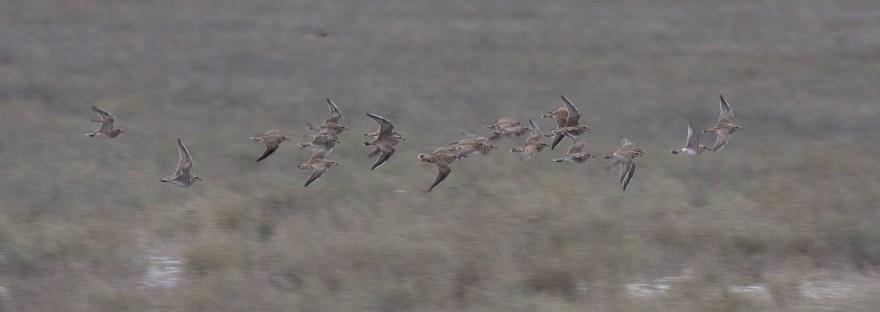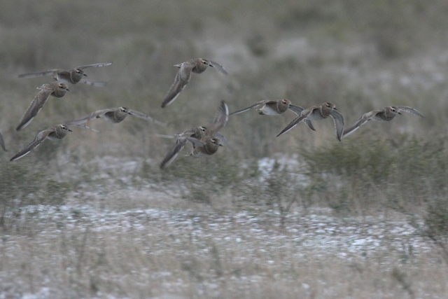 After some more or less boring days, the 7th November was maybe the most impressive observation day during the entire autumn season. After a cold and stormy night the landscape was covered with a thin but complete layer of snow. These bad weather conditions lasted the whole day with occasionally snowfalls and temperatures around 0°C. This onset of winter was responsible for spectacular bird migration through the bottleneck. I counted more than 150’000 Skylarks, 80’000+ Little Bustards and thousands of Pygmy Cormorants, Cormorants, geese, herons etc. Furthermore, a Sociable Lapwing migrated among some hundreds Lapwings and I heard a calling Richards Pipit in the stream of migrating larks. In the coastal plain I found 2 flocks of Dotterel with 35 individuals and a single Horned Lark.
