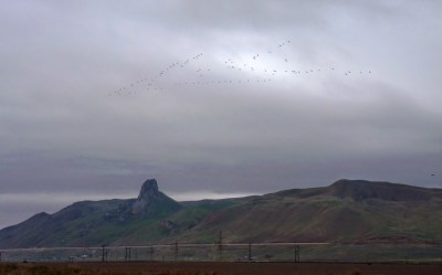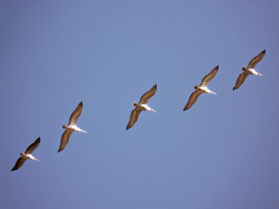 | Great White Egrets flying through the Besh Barmag bottleneck |