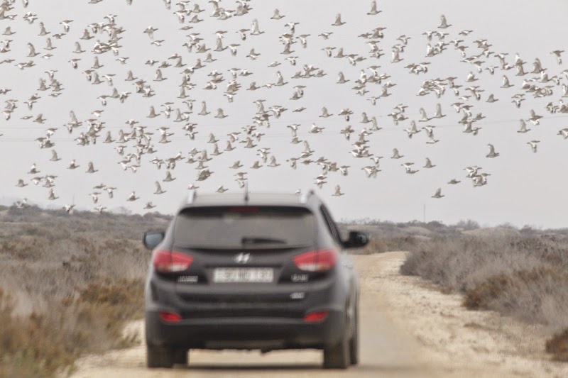 The next morning we visited Shirvan again. The tracks in the park were dry, so we reached the coast. We checked the Caspian Sea and found 1 Velvet Scoter, 1 Red-throated and 1 Black-throated Diver, several Great Crested Grebes and a few waders and gulls including an ad heuglini. In the bushes we flushed 3 Black Francolins, a Long-eared and a Short-eared Owl and saw also 2 Long-legged and 1 Rough-legged Buzzard, 2 Peregrines, 1 Imperial Eagle and several White-tailed Eagles, Hen Harriers and Merlins. Just before we left the park we had once again great views on huge flocks of Little Bustards.