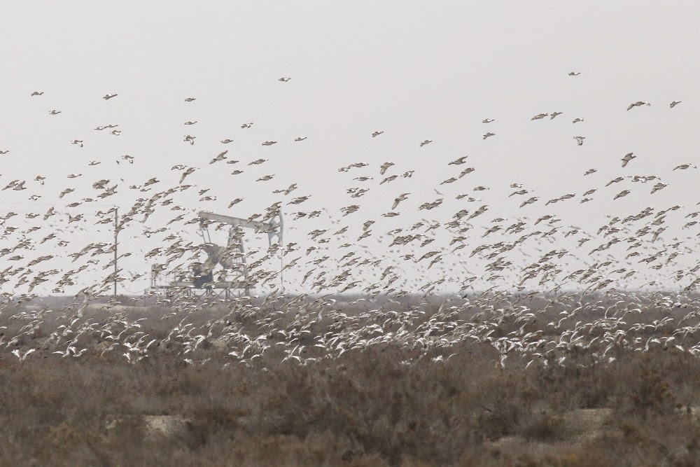 We headed further south for the next stop in the Shirvan National Park. Several groups of gazelles were around as usual but two distant wolves were a nice surprise. Among the passerines we found mainly Corn Buntings, Meadow Pipits and Common Linnets. Hen Harriers and Merlins were frequent. A first flock of about 3.000 Little Bustards flew in some distance. A stop in the steppe produced flocks of larks, dominated by Skylark and Calandra Lark, but also 3 or 4 White-winged Larks were among them. This species was a main target for some of us but unfortunately only a few saw them. 9 Lesser White-fronted Geese were among hundreds of Greater White-fronted and Greylag Geese.