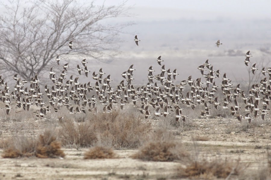 A drive through the steppe around the Ajinohur Lake produced a homeyeri Great Grey Shrike, 650 Little Bustards, about 500 Calandra Larks and 150 Mistle Thrushes.