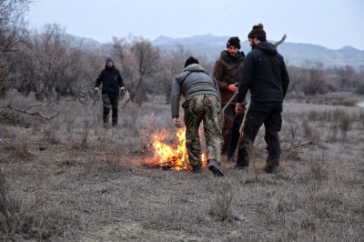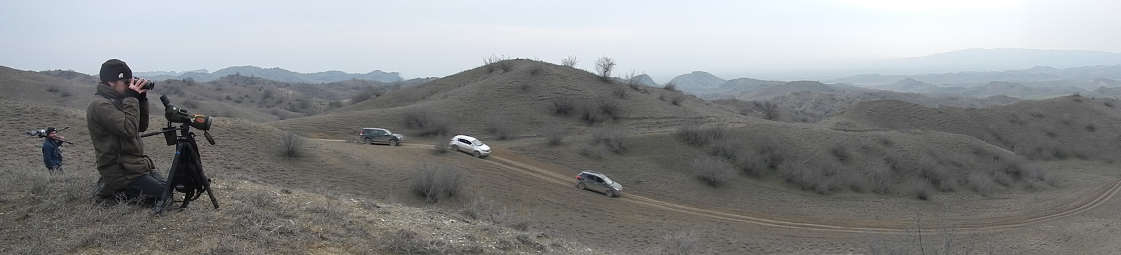 We spent the night in tents close to the Mingecevir reservoir. In the morning we saw 7 Greater White-fronted and 30 Greylag Geese, more than 35 Ruddy Shelducks, 2 Black-necked Grebes, 1 Armenian and 5 Pallas’s Gulls. Once again we heard an overflying Red-fronted Serin. Close to the Georgian border we flushed 3 Black Francolins and saw about 10 Syrian Woodpeckers. In the bushes Hawfinches, Chaffinches, Bramblings, Robins, Blue, Great and Long-tailed Tits, Goldcreast and Blackbirds were common. We also had 1 Chiffchaff, 4 Bullfinches, 2 Fieldfares and a Redwing.