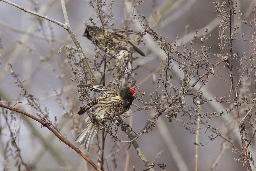 The following day we drove down to Qusar, where we checked orchards and arable land for some wintering species. Besides the common species we were really happy to see two quite tame Red-fronted Serins. Until these two individuals, we had only disappointing observations of this species. Another big disappointment was that we had no observation of Pine Buntings, which was one of the highlights from our last winter birding trip. Near Qusar, we saw about 120 Yellowhammers and checked each individual carefully. At least 5 individuals showed features of both species and we logged them as possible hybrids Emberiza citrinella x leucocephalos. Another birding stop in the lowland forests of Samur-Yalama produced as a new species for the trip: a single Middle Spotted Woodpecker.