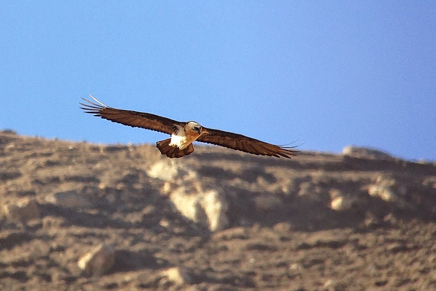 Above the tree line we had a spectacular sighting of a Lammergeier that was circling above a canyon at about 1.500 m asl. At the same location we observed 35 Red-billed Choughs, 1 Ring Ouzel, some European Goldfinches and a surprising Great Grey Shrike. As it was already late we drove down to our hotel where we spent the night.