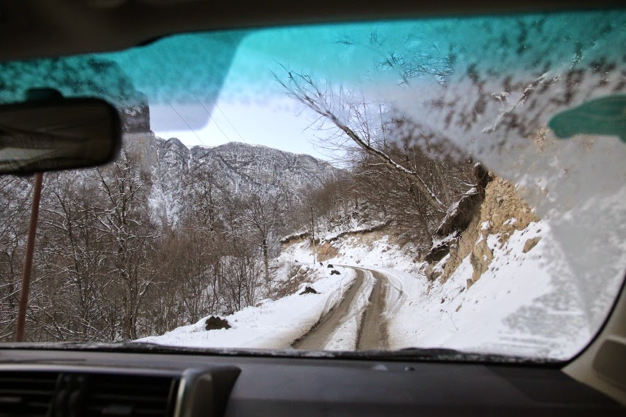 After the awful dump at Besh Barmag we drove via Quba into the Greater Caucasus in order to see a much nicer landscape. Our plan was to reach Xinaliq regardless the possible snow cover or expected cold temperatures high up in the mountains. Nobody of us has ever been there in winter, so we were pretty excited. The first kilometres offered us brilliant views of the Caucasian winter, but we missed the birds along the road in the lower forested altitudes. We saw mainly Blackbirds, Mistle Thrushes and three Goshawks.