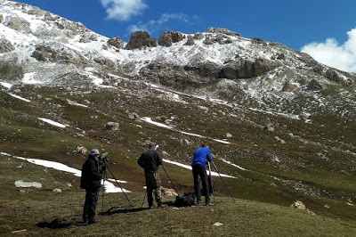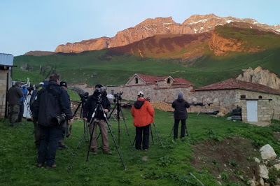 In Laza there were about a dozen displaying Caucasian Black Grouse right above our homestay in the village. During the morning also several Wallcreepers, Mountain Chiffchaff, Green Warbler, Caucasian Snowcock, 5 Lammergeiers and a lot more was seen. A bit unsatisfying was a short fly-by of two Great Rosefinches.