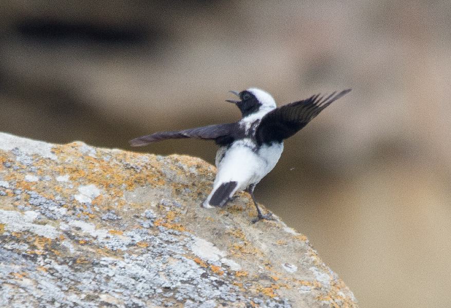 | hybrid Pied x Eastern Black-eared Wheatear, by Niklas Andersson |