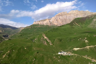 The morning welcomed us with clear blue sky and at sunrise everybody was up to see the Caucasian Black Grouse at their lek just right from the doorstep. Also a few Caucasian Turs with fawns were spotted on the flank of Shahdag mountain. Other target species seen were Mountain Chiffchaff, Green Warbler and Caucasian Twite. The meadows were full of coutelli-Water Pipits, Red-fronted Serins and Common Rosefinches, Ring Ouzels were singing and Golden Eagles soaring overhead. Unfortunately just two of us saw each one of a pair of Great Rosefinches very briefly. The weather quickly turned into rain so we decided to go back. In Laza the sun was shining again but we were happy anyway and enjoyed one or the other beer in this overwhelming scenery.