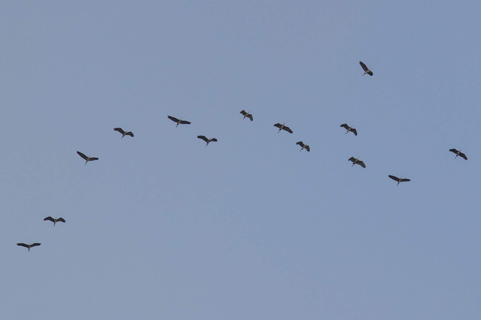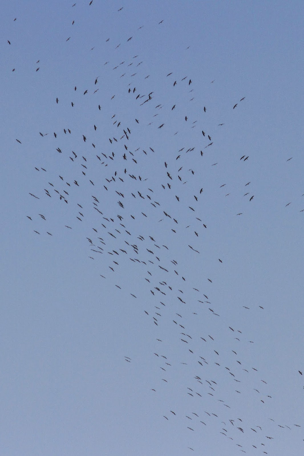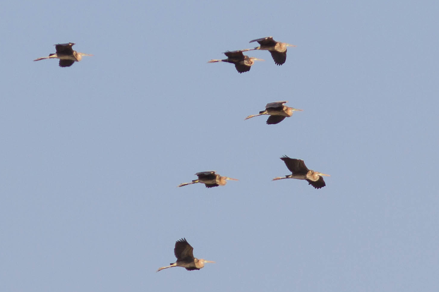 From early morning on several flocks of Purple and other herons gave us great fun. Now the evening breaks in and from the already somewhat stale light a group of nearly 200 herons emerges and flies straight over our heads: 135 Purple Herons together with 55 Grey Herons are a great observation for all and screw up the already enormous number of migrating herons. The day ends with a total of 757 Purple Herons, which almost reach the 1225 Grey Herons a few days before. Breath-taking numbers! This is the bird migration at the Besh!