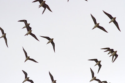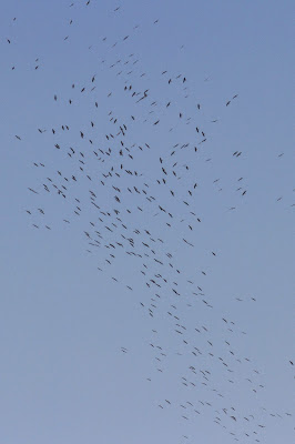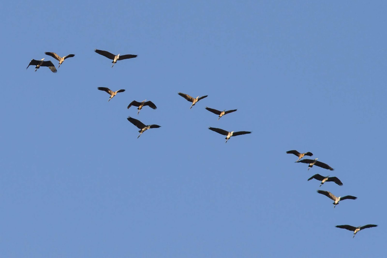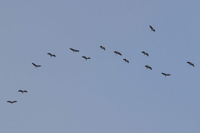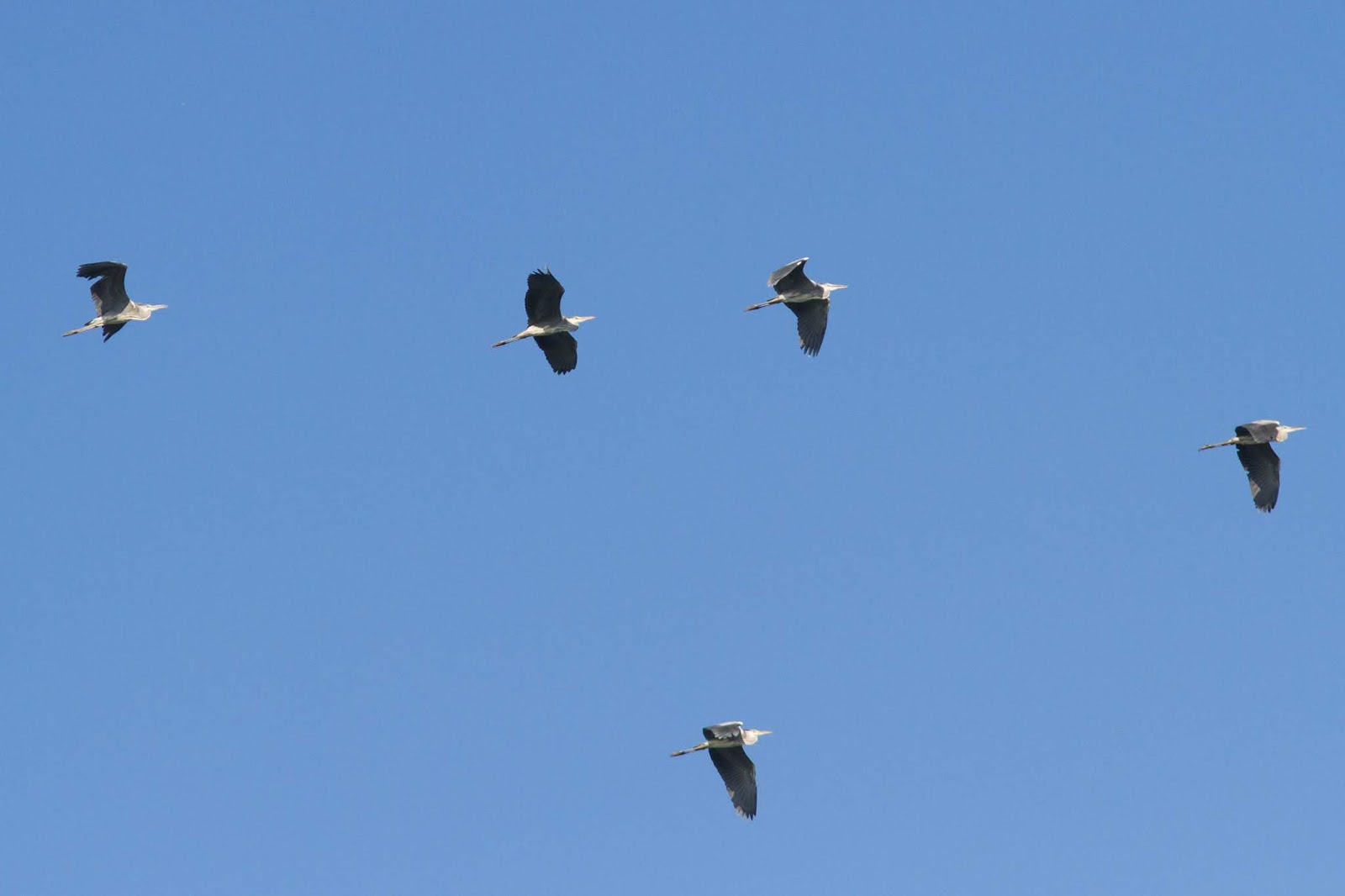 From early morning on several flocks of Purple and other herons gave us great fun. Now the evening breaks in and from the already somewhat stale light a group of nearly 200 herons emerges and flies straight over our heads: 135 Purple Herons together with 55 Grey Herons are a great observation for all and screw up the already enormous number of migrating herons. The day ends with a total of 757 Purple Herons, which almost reach the 1225 Grey Herons a few days before. Breath-taking numbers! This is the bird migration at the Besh!
