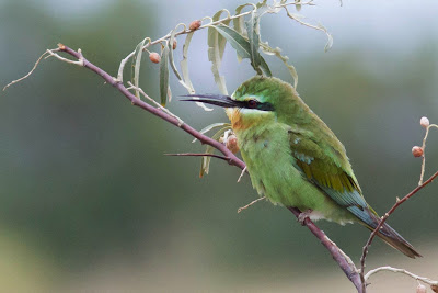 | Tired of migration? Resting Blue-cheeked Bee-eater. |