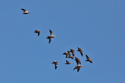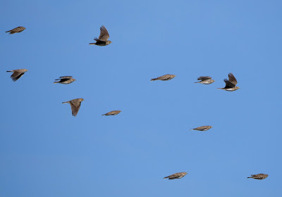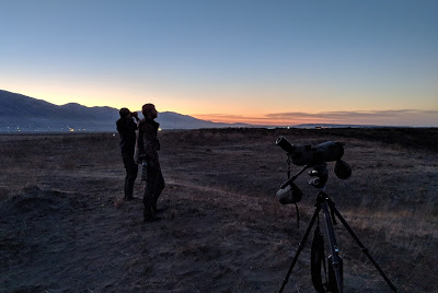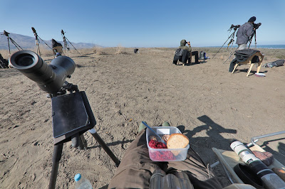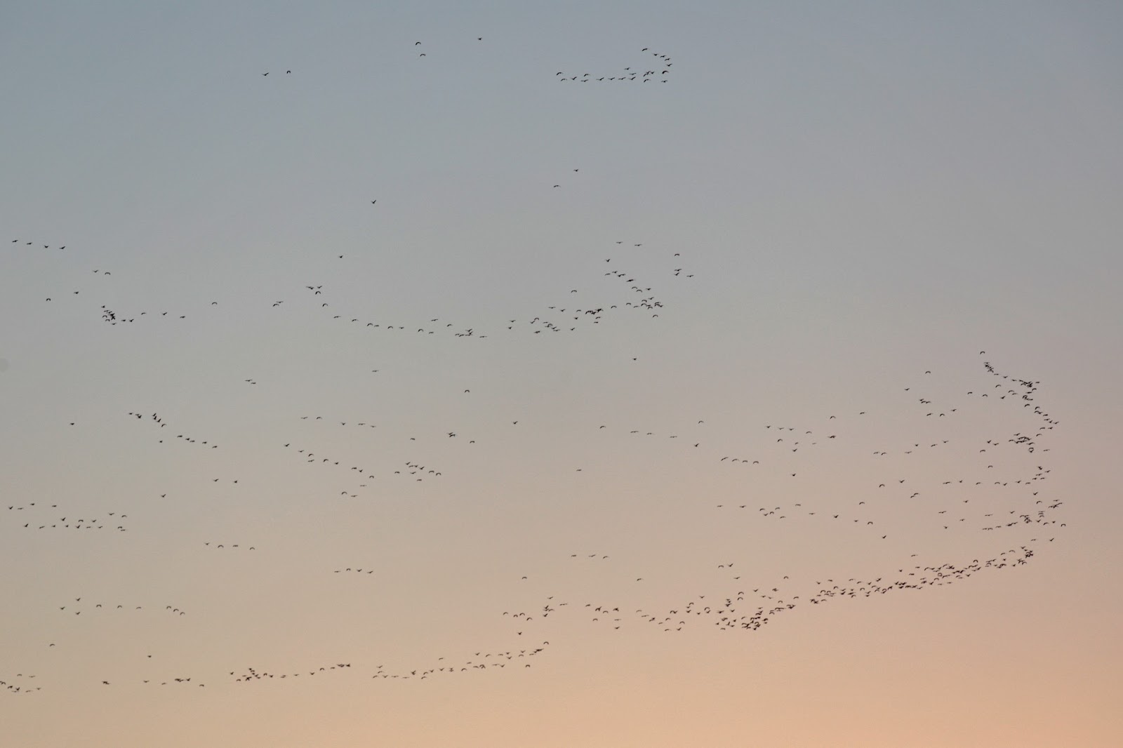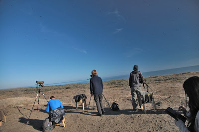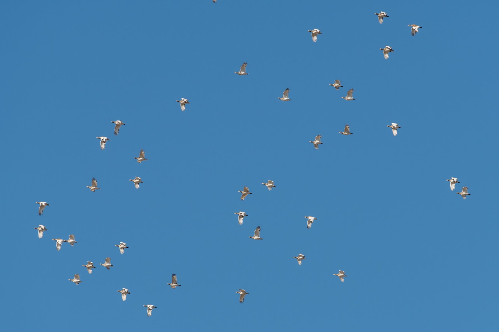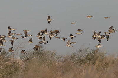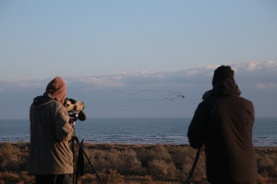 Over eighteen days of migration counts, the highlights of my trip are too many to mention. From a personal perspective, few individual sightings stand out. On my first full day, we were treated to a flypast by a stunning tawny-coloured female ‘Steppe’ Merlin, a taxon I’ve missed on previous trips (we saw at least one more of these smart birds); picking out my first White-winged Lark from a migrating flock of Calandras was incredibly satisfying and a memory that’s going to last. And I don’t think anyone present on 30thOctober will forget the moment late in the morning when ‘big bustard!’ was called flying in from the sea – as it turned south, it became clear it was a stunning male MacQueen’s Bustard, which landed close to the watchpoint. Probably the most unexpected sighting of the 2018 season… However, the main draw of Besh Barmag are the big days, massive counts of species (such as the wildfowl above). 5thNovember was a good one – after impressive numbers of corvids and starlings, we suddenly were in the middle of a surprise movement of Bramblings, with over 5,700 flying north late morning (https://www.trektellen.nl/count/view/1533/20181105). On a number of days, a big flock of pelicans – mostly Dalmatian, but a few Great Whites – appeared, while any incoming large flock of Little Bustards guaranteed excitement. My first taste of bustard migration came on the morning of 28thOctober, which was also notable for awesome flocks of ardeidae – and not just by day. A fixture of the days at Besh Barmag were remaining until darkness, awaiting the spectacle of heron migration; a remarkable number of Great Bitterns can often rise from the bushes, call as they circle into the dusk sky, and head south. Waiting and squinting into the half-light was soon christened “staying until the Bittern end”…