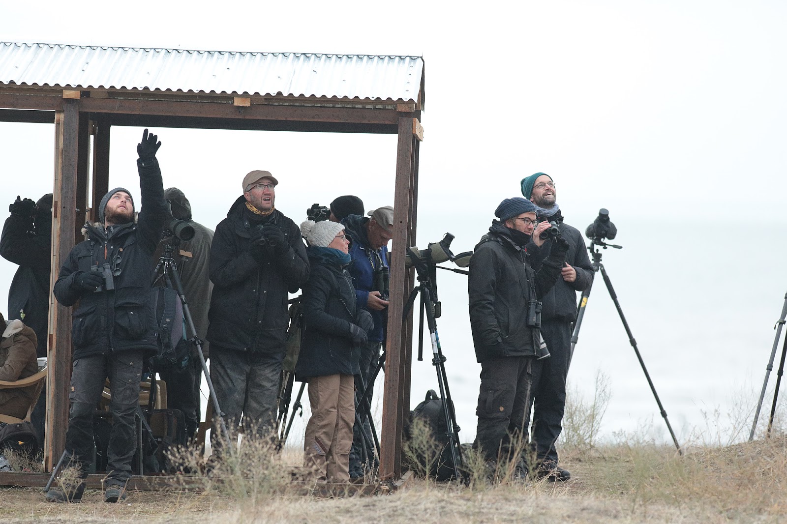 One of my favourite aspects of participating in a count like this is the chance to hone knowledge and skills. Even the most experienced birders cannot fail to learn something – assuming, of course, you approach things with an open mind, and pay attention to your count colleagues! There’s a constant chat regarding identification, ageing and how best to record birds, and a wealth of information being shared. I didn’t know, for example, of the diagnostic difference in flock structure between Great and Pygmy Cormorants: we’re all familiar with the Vs and straggling lines of the former, but the ‘loose’, chaotic and Rook-like look of groups of the latter was new to me! This is what you get from a multi-national, knowledgeable team of migration counters. Many were previous graduates of the (for now) more well-known Batumi Raptor count, and some of us had surveyed together in the past, but the differences are quite marked. At Batumi, the count protocol is quite rigid, do deal with the various streams of birds of prey; here, the methods are a little more freeform: the huge diversity of species to count and, as previously mentioned, the unpredictability of each day, make this a necessity. Which of these two locations is better? This sort of thing will always be down to personal preference, and some might suggest the range of different species and types of migration (raptors, VisMig, seawatching…) edges Besh ahead – although I couldn’t possibly comment…