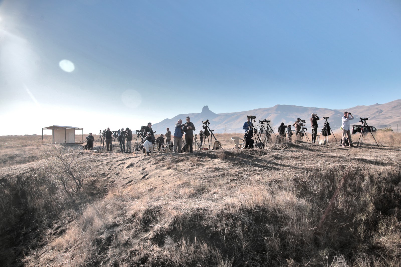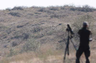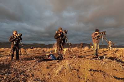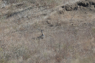 | A MacQueen’s Bustard just landed south of the counting station. Well seen by the lucky counters © Michael Heiß |