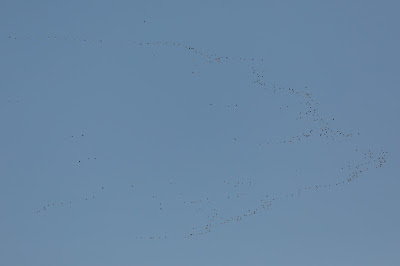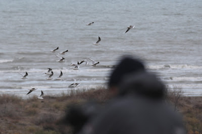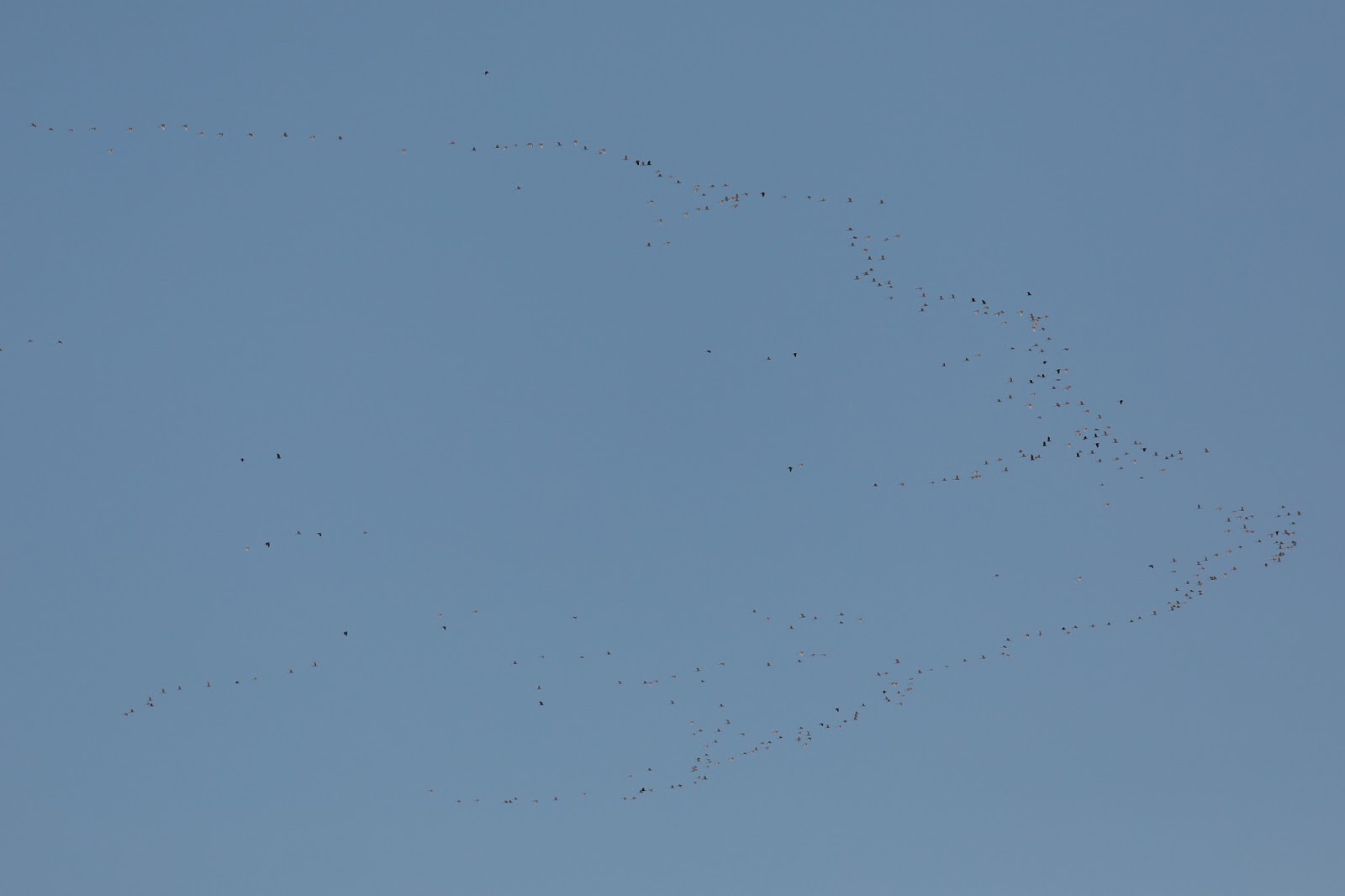 All that dry theory is well and good, but it doesn’t really convey the excitement of being in this unique spot. At least part of that is because of the sheer unpredictability of migration. Trying to make an informed guess at what birds the day ahead holds is something that all birders do, even if we mostly get it wrong. At Besh Barmag, it proved almost impossible – not that it stopped us! For example, one of the more exciting days was on 1stNovember (counts here), when ducks and geese flooded past all day, and nearly 12,000 Skylarks arrived from the sea and covered the fields, feeding while still soaked. The following week, with similar miserable weather conditions, the counters were primed for a repeat, and what did we get? A fairly quiet sea, and over 200 Marsh Harriers in the first couple of hours! Ultimately it was another spectacular day, as large waterbirds staged an appearance en masse from early afternoon (6th November). Swans, geese and Great Egrets passed just overhead, and I was ‘lucky’ enough to be counting Great Cormorants as 10,000 flew by in a couple of hours (and my thumb is still recovering). Whatever the weather forecast, we never knew what was in store, which is a good motivation for the early starts!
