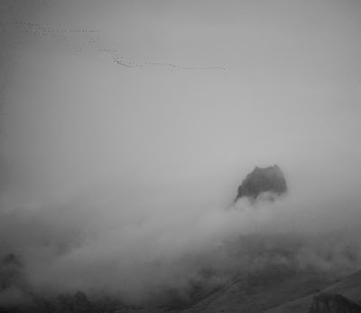 | Besh Barmag with a flock of Great Cormorants © Björn Malmhagen |