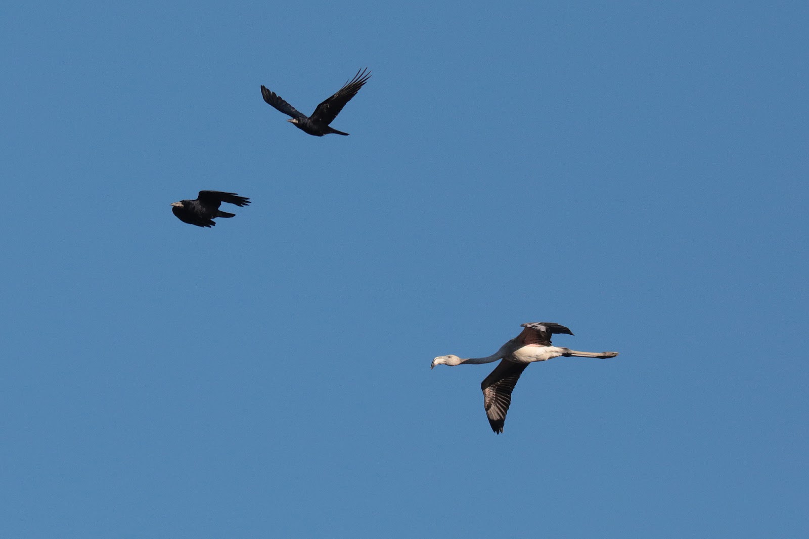 | Two Rooks and one Greater Flamingo © Michael Heiß |
