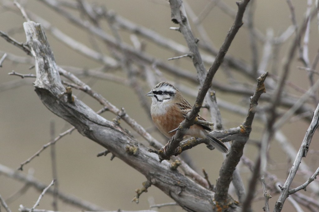 We then tried a steep muddy and partly frozen track in south-eastern direction. We were glad to have a 4WD car, but even with this machine, we were sliding here and there and it was very precarious at times to keep control of the car, which was driving right next to the steep gradient of the mountain ridge. Breaks don’t work on ice when you drive down the hill. Amazing experience! Nevertheless, along the ridge we found an area, which was well covered by bushes. In these we found a mixed flock of thrushes, which was dominated by another 20 Black-throated Thrushes! Several flocks of Chukars, totalling 40 individuals, and 5 Red-fronted Serins were other highlights of this spot (https://ebird.org/checklist/S61515280).