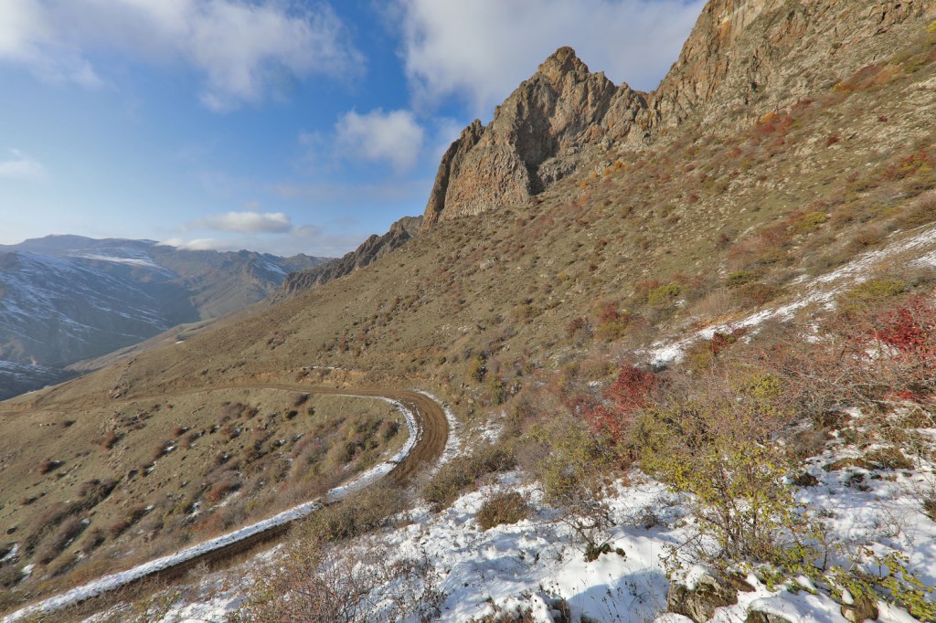 On 10 November we went up to the Qizilqaya Mountain in the Shadagh National Park, where we found most of the local specialities: 18 Caucasian Snowcocks, 1 Bearded Vulture, 11 Horned Larks, 2 Güldenstädt’s Redstarts, 3 White-winged Snowfinches, 6 Red-fronted Serins besides the regular species (https://ebird.org/checklist/S61323659). The species list is quite similar to spring birding in this area and finding these Caucasian specialities is probably year-round possible.