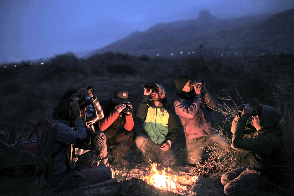 Bird migration count until darkness at Besh Barmag bottleneck. On a very few days in autumn you can witness the onset of nocturnal bittern migration. In the evening of 10 October 2022 34 Great Bittern, 50 Little Bittern and a few Grey and Purple Heron suddenly popped up and headed south. This all happend after a good day of heron migration.