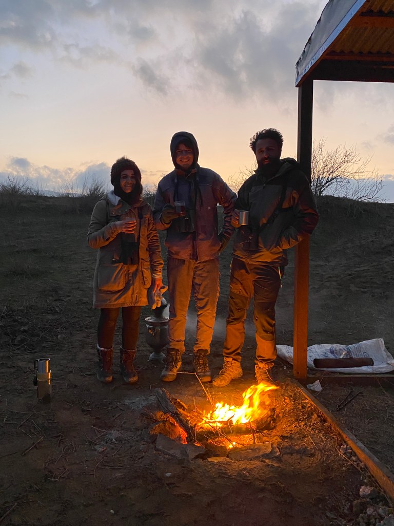 ….Icing on the cake with to finish, a group of 7 Bewick´s Swan´s 15 minutes after the sunset, the last data of this amazing December period! Last data of this amazing season overall my friends!!! Indeed, it is the end after 101 consecutive days of monitoring, 1.845.468 birds in active migration to the south and some thousands in stopover of 271 species! In examples, this season was this flock of more than 600 Black-winged Pratincoles circling above Besh Barmag end of September, this group of 70 Steppe Eagles along the Caucasus ridges mid-October, this group of more than 3000 Little Bustards overhead mid-November and to finish these flocks of hundred Pallas´s Gulls in December! We still learnt a lot about this wonderful bottleneck! Without the different teams present all the season long, all of these results would not have been as rich! So, it’s definitely a time to say a great thank you in first to Elvin Məmmədsoy, his constant motivation/energy to build this project on the field before to begin, during the count and hopefully for the future my friend!! In second Michael Heiß for the hard work 10 years ago when almost nothing were known here, his nice knowledge sharing about many things here, his constant support on the field and from Germany, this wonderful moments of fun on the station in October! In third, off course to all of the counters from 1st September to 10 December : Abdin Abbasov , Leyla Muslim (thanks a lot for your help, your constant kindness), Zülfü Fərəcli (please “appear again”