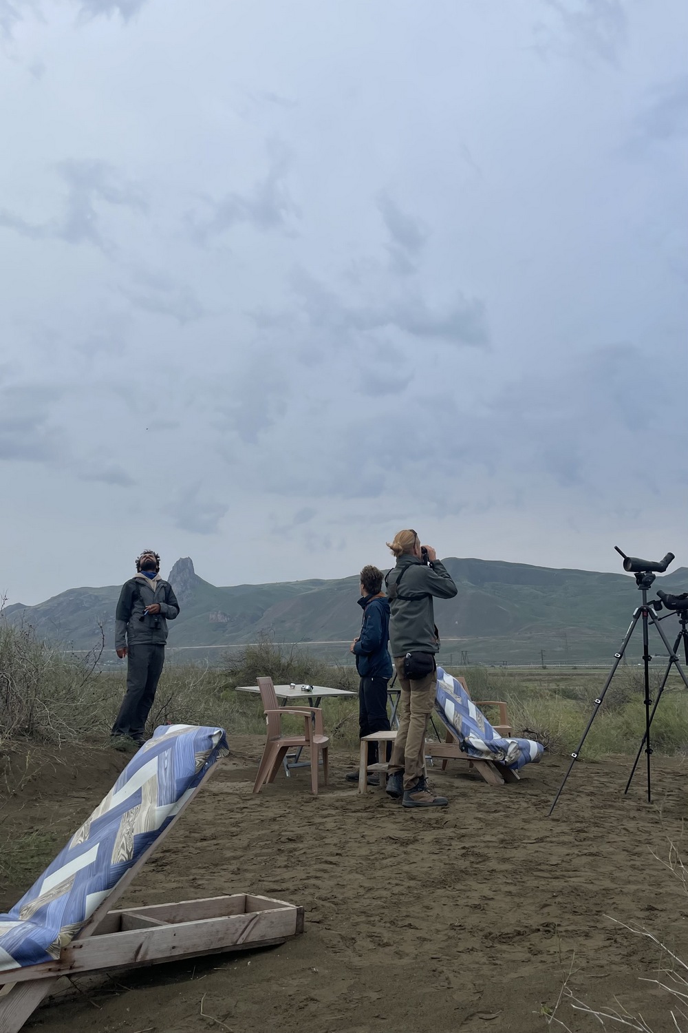 The Besh Barmag Bird Migration Count is currently halfway through the season. Remarkable six weeks have been counted for autumn 2023 and six more will follow. In the first half of October, five dedicated counters, namely Leyla, Elvin, Zülfü, Moritz and Lasse, undertook the daily routine of tracking bird migration. Their efforts were generously rewarded with sightings of some of the finest bird species engaged in their remarkable journeys.